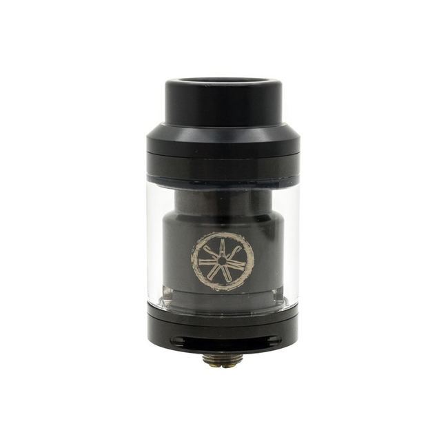 Первый обслуживаемый атомайзер от компании asMODus. Бак хоть и не является инновационным с точки зрения конструктива, но при этом предлагает пользователю удобную базу для установки койлов, выполненную по принципам дрипок с нижним обдувом. Диаметр устройства в 25мм. Заправка атомайзера производится сверху, для доступа к заправочным отверстиям необходимо открутить верхнюю крышку устройства. бак способен вместить 2,5 мл. жидкости. В комплекте имеется запасное стекло. На базе атомайзера есть два отверстия подачи воздуха и кольцо обдува, позволяющее их перекрывать. Воздух из базы подаётся на намотку через два больших отверстия - этого хватит для обдува любой намотки. Дрип тип является частью топкэпа и не подлежит замене на сторонний. Топкэп с дрип типом выполнены из дэлерина, чтобы выдержать любой возможный нагрев бака при работе. В комплекте поставки производитель прикладывает два готовых Fused Clapton, с которыми бак способен выдать прекрасную производительность как по вкусопередаче, так и по количеству пара.