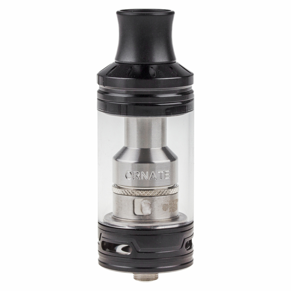Как и положено настоящему флагману, клиромайзер Ornate во-многом сделан с заделом на будущее. Вот вам пример: высота нашего героя составляет вполне привычные 70 мм, зато диаметр равняется аж 25 миллиметрам. Очевидно, что новинка от Joyetech ориентирована, в первую очередь, на работу с массивными и максимально производительными боксмодами, хотя на практике коннектор типа 510 позволяет состыковать Ornate практически с любым современным батарейным модом, поддерживающим сопротивление от 0,15 Ом. Отметим также, что расширенная «талия» самым благоприятным образом сказалась на полезном объеме резервуара для жидкости — бак клиромайзера Joye Ornate вмещает 6 миллилитров смеси. Даже по меркам одноклассников результат выше среднего! Как и всегда, сколько-нибудь точно предугадать расход жидкости здесь не представляется возможным (от слишком уж многих факторов он будет зависеть), однако при умеренном парении заправлять бак клиромайзера Joyetech Ornate вам придется не чаще 2-3 раз в день. Опять же, для топового девайса, сп