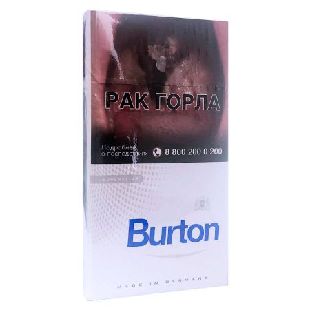 Облегчённые сигареты Бёртон Вайт Супер Слимс в тонком формате производятся из натуральных табаков сорта Вирджиния и Бёрли.
