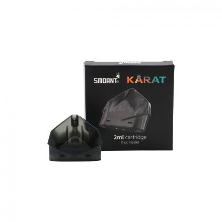 Smoant Karat - картридж, разработанные Smoant для их POD-системы Karat. С точки зрения общего конструктива картридж умещает в себе испарительную часть устройства и ёмкость для жидкости. Картридж крепится внутри батарейной части при помощи двух магнитов, для заправки картриджа потребуется вынуть его из батарейной части - на нижней его стороне присутствует силиконовая заглушка, прикрывающая два отверстия для заправки картриджа жидкостью. Объём жидкости, вмещающейся в картридж, составляет 2 мл. После первой заправки рекомендуется подождать несколько минут, чтобы испаритель пропитался жидкостью и не подгорел во время первого запуска устройства. Внутри картриджа установлена спираль, позиционируемая производителем, как Quartz Coil - фактически, это спираль с сопротивлением 1.3 Ом, установленная в керамический фитиль и дополнительно обёрнутая небольшим отрезом хлопка для создания запаса жидкости. Керамические испарители традиционно являются более надёжными в сравнении с классическим хлопком и способны передавать бол