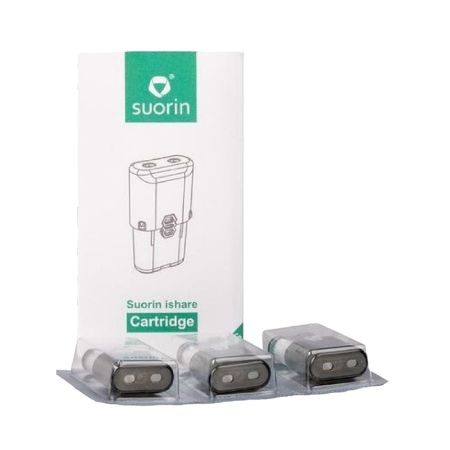 Suorin iShare - картридж ёмкостью 0,9 мл с проприетарным разъёмом, предназначенный для использования совместно с системой закрытого типа от компании Suorin. Картриджи в данной системе являются неразборными и испарительный элемент находится внутри них, поэтому когда испарительная часть приходит в негодность, необходимо заменить в устройстве весь картридж целиком. Перед первым запуском нового картриджа настоятельно рекомендуется заправить его жидкостью и оставить на несколько минут, чтобы фитиль пропитался жидкостью и не подгорел при первом запуске устройства. Картридж рассчитан на достаточно тугую затяжку и медленно расходует жидкость.