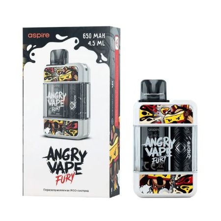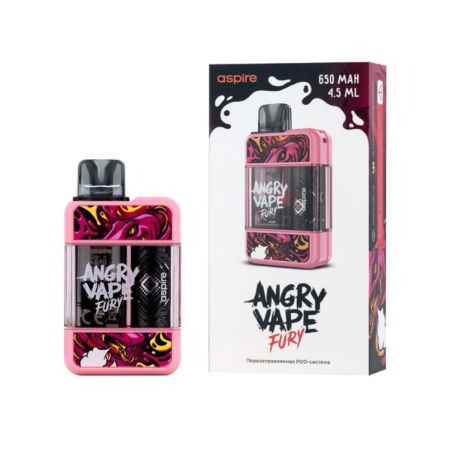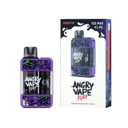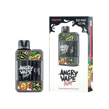 Электронная сигарета ANGRY VAPE FURY разработана в коллаборации бренда Angry Vape и компании Aspire. Прямоугольный корпус устройства со сглаженными углами выполнен из поликарбоната и ABS-пластика, делая девайс прочным и лёгким. Электронная сигарета имеет компактные габариты, что доставляет максимальный комфорт при ношении её в кармане или сумке.Сменный картридж ANGRY VAPE FURY из PCTG-пластика имеет простое боковое отверстие для заправки жидкости, закрытое силиконовой заглушкой. Вместительность объёмного бака составляет сразу 4,5 мл. Несменный испарительный элемент на сетке из сплава Kanthal AF с сопротивлением 0,8 Ом, работает на мощности от 12 до 15 Вт.Электронная сигарета оснащена автоматической затяжкой и имеет ползунок регулировки обдува внизу корпуса, что позволяет регулировать затяжку от тугой MTL до более свободной RDTL-затяжки. Девайс оснащён световым индикатором, сигнализирующим белым о статусе зарядки.Встроенный аккумулятор ёмкостью 650 мАч заряжается через порт USB Type-C.