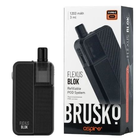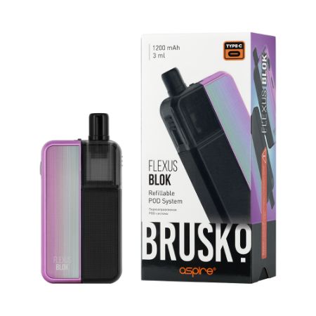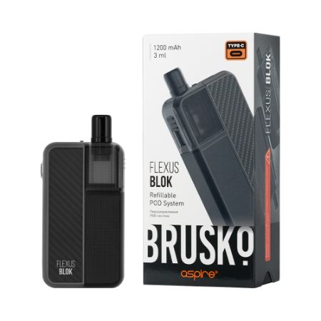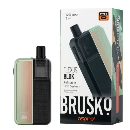 Электронная сигарета FLEXUS BLOK создана в коллаборации бренда BRUSKO с компанией Aspire. Корпус девайса имеет форм-фактор прямоугольного бокса со скругленными углами и выполнен из пластика и цинкового сплава. Устройство отличается небольшим весом – 85 грамм.Прямоугольный картридж электронной сигареты из пищевого PCTG-пластика имеет вместительный бак, куда можно залить 3 мл жидкости. Сменный испарительный элемент на сетке с сопротивлением 0,6 Ом работает с постоянным напряжением 15-18 Вт, и сопротивлением 1,0 Ом, работающий с постоянным напряжением 12-15 Вт, совместимы со всем семейством электронных сигарет FLEXUS. Отверстие для заправки находится сбоку картриджа.Батарейный блок POD-системы с ёмкостью аккумулятора 1200 мАч обеспечит бесперебойную работу в течение всего дня. Вместе с тем порт зарядки USB Type-C расположен сбоку корпуса девайса. Устройство оснащено двойным режимом активации: испарительный элемент начинает нагреваться при нажатии на кнопку или от автозатяжки. На верхней грани картриджа наход