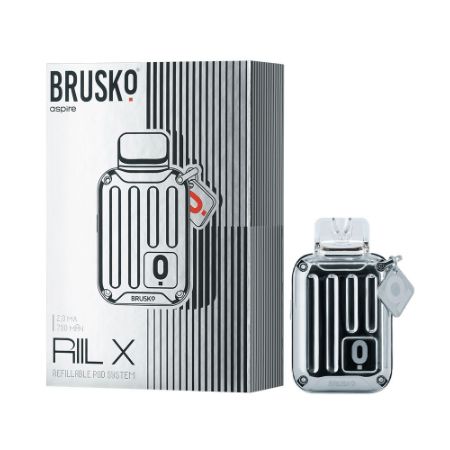 Серебряный RIIL X сделан также, как и золотой, из цинкового сплава, а в комплекте к девайсам идёт цепочка и брелок, делающие BRUSKO RIIL X иконой стиля среди электронных сигарет.