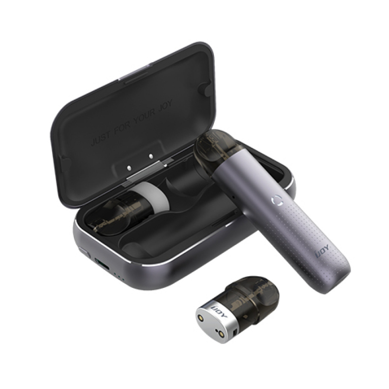 Стильный и набор iJOY MIPO от именитого производителя предлагает сразу два устройства в одном — картриджную систему, а также чехол-зарядку, при помощи которого этот девайс заряжается. В корпус пода установлен аккумулятор с ёмкостью 200mah, но при этом её можно в любой момент установить в комплектный кейс-зарядку, внутри которой установлен аккумулятор на 1000mah, что увеличивает общее время работы устройства от одного заряда. зарядка док станции осуществляется при помощи micro USB порта, который помещён разработчиками на боковую панель устройства. Рядом с зарядным портом находится светодиоды, позволяющие проверить уровень заряда аккумулятора. Картридж устройства выполнен в виде монолитной конструкции из тела бака с заправочным отверстием, дрип типом и испарительной частью внутри корпуса. Сопротивление картриджа составляет 1,4 Ом. Картридж фиксируется на батарейном блоке при помощи пары магнитов, обеспечивающих надёжную фиксацию.