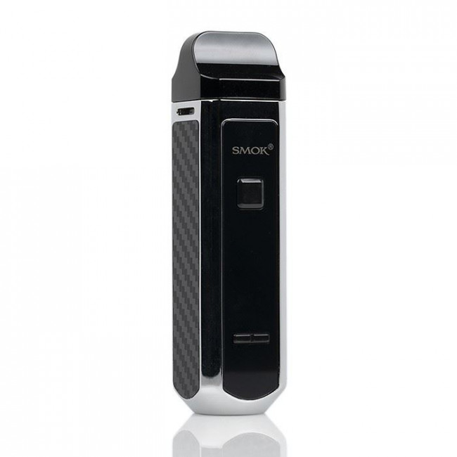 Cтартовый набор от компании Smok, предлагающий пользователям POD-систему, которая на первый взгляд является своего рода прогрессией формфактора Lost Vape Orion. Внутри батарейного блока установлен аккумулятор с ёмкостью 1500mah. Для зарядки аккумулятора в поде установлен micro USB порт. Для управления устройством на корпусе присутствует три управляющие клавиши. Кнопка Fire, клавиши настройки мощности - с их помощью можно отрегулировать мощность в диапазоне от 1Вт до 40Вт. На передней панели устройства присутствует цветной экран, на котором будет выведена текущая выбранная мощность, время последней затяжки, уровень заряда аккумулятора и количество сделанных в целом затяжек. Коннекторная часть устройства, использующаяся для установки в неё картриджа, выполнена по проприетарному стандарту, для фиксации картриджа внутри коннектора используются магниты.