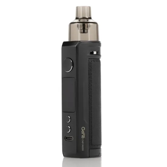 Стартовый набор от компании Voopoo, продолжающий линейку устройств Drag. Устройство можно отнести к классу под мод систем. В под устанавливается картридж, внутрь которого устанавливаются сменные испарители или rba база. В поде присутсвует отсек под один аккумулятор 18650. Зарядка осуществляется с помощью Type-C порта, он может принимать силу тока до 1,6А. Управление устройством осуществляется с помощью трёх кнопок, которые расположили привычным для пользователя образом - все три кнопки выведены на переднюю панель устройства, рядом с кнопками расположился небольшой дисплей. Затяжка может происходить как через нажатие на клавишу Fire, так и через затяжку. В комплекте поставки идёт два pnp испарителя с сопротивлением 0,2 Ом и 0,3 Ом. Общий объём картриджа составляет 4,5 мл. Так же в поде присутствует регулировка воздуха. Выполнена она не обычно - спереди устройства на верхней части присутствует небольшой рычажок, который можно лёгким движением сдвигать, тем самым открывая и закрывая обдув.