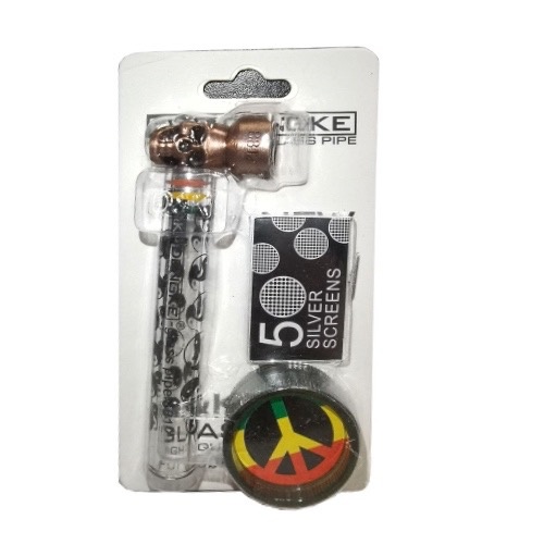 Трубка курительная D&K DENGKE (стекло) + 5 сеточек, гриндер