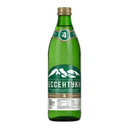 «Ессентуки №4» — вода минеральная природная лечебно-столовая питьевая газированная. Хлоридно-гидрокарбонатная (гидрокарбонатно-хлоридная) натриевая, борная средней минерализации 7-10 г/л. Обладает мягким солоноватым вкусом.